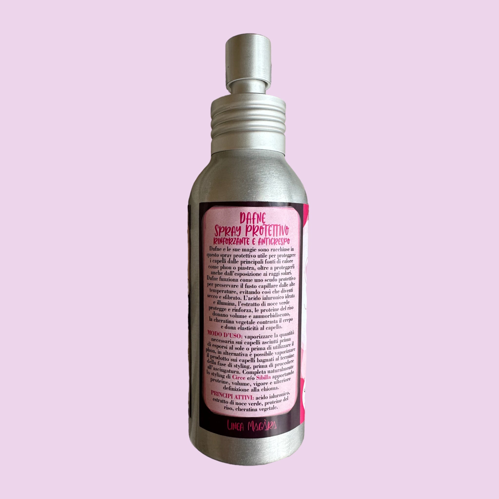 Dafne e le sue magie sono racchiuse in questo spray termoprotettore utile per proteggere i capelli dalle principali fonti di calore come phon o piastra, oltre a proteggerli anche dall’esposizione ai raggi solari.