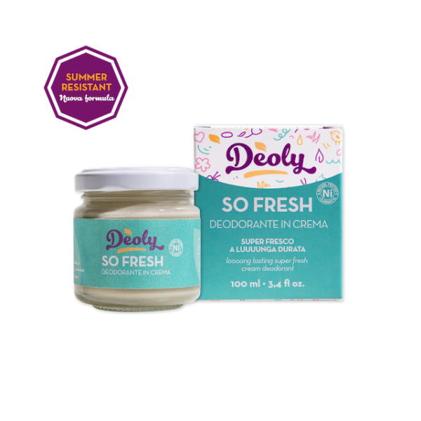 So Fresh di Deoly è un morbido deodorante in crema ideale per gli sportivi e per chi vuole una ventata di freschezza. Il trietilcitrato limita l’attività e lo sviluppo delle sostanze maleodoranti, insieme alle proprietà adsorbenti e antibatteriche dell’argilla verde. Il fresco profumo di menta persiste a lungo sulla pelle, donando immediatamente una sensazione di fresco e pulito.