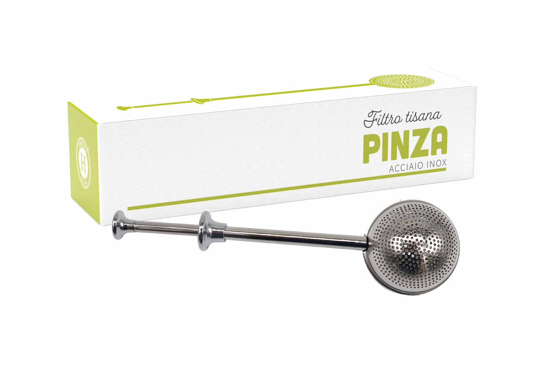 Comodo filtro per tisana in acciaio inox a forma di pinza.