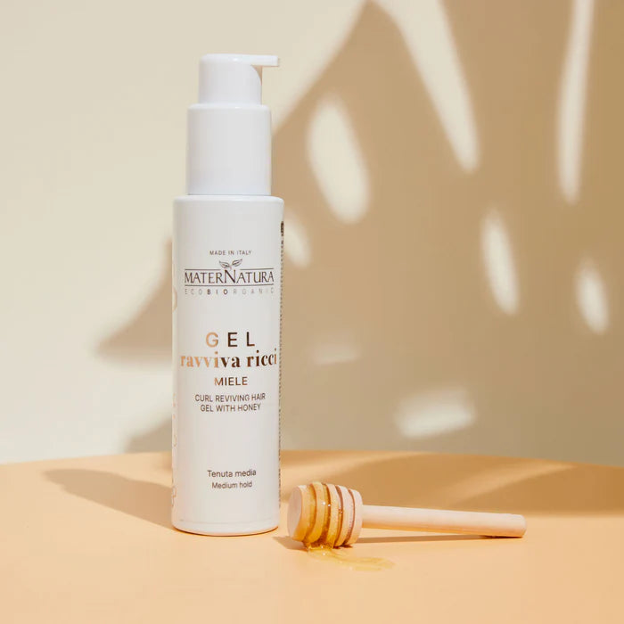 Il gel ravviva ricci con miele di Maternatura è il prodotto ideale per capelli ricci e mossi che hanno bisogno di definizione. La sua formula, ricca di preziosi ingredienti come miele, estratto di aloe, altea, ortica e camomilla, nutre e protegge i capelli creando un film sottile intorno alla fibra capillare, donando maggior sostegno ed elasticità ai capelli ricci e mossi.