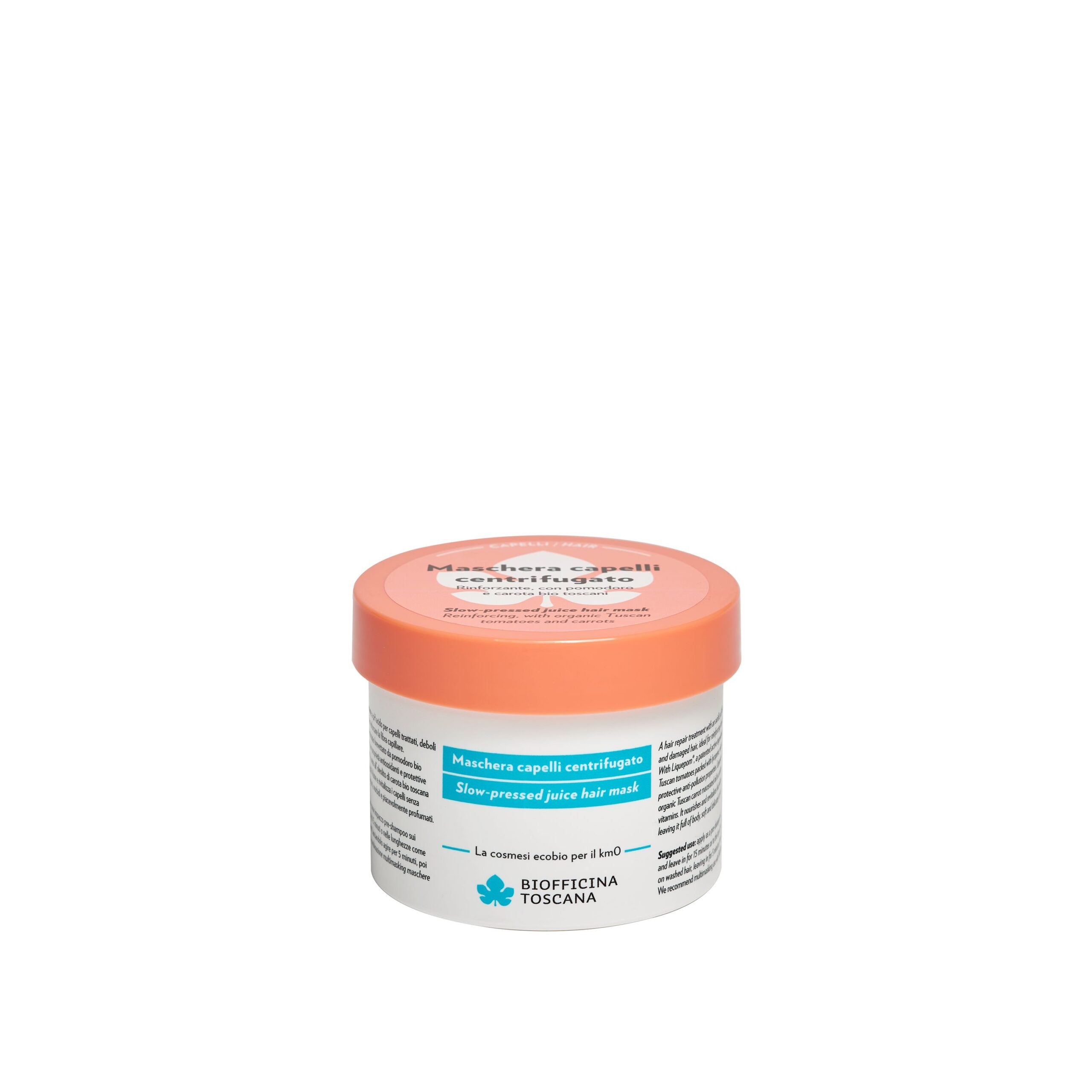 Contiene Liquepom®, un principio brevettato da pomodoro bio toscano, ricco in licopene, con proprietà antiossidanti e protettive anti-pollution. Liquepom® è unito all’ oleolito di carota bio toscana in un mix di vitamine vegetali. Nutre e rivitalizza i capelli senza appesantirli, lasciandoli corposi, morbidi e piacevolmente profumati.