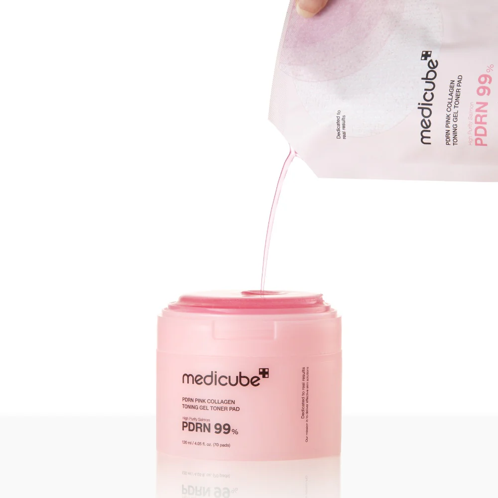 Medicube PDRN Pink Collagen Toning Gel Toner Pad è un innovativo jelly toner pad pensato per migliorare tono, compattezza e luminosità della pelle in un solo gesto. La sua texture in gel elastico, diversa dai classici dischetti in cotone, si trasforma in un pad morbido e rimbalzante che aderisce perfettamente al viso, favorendo un rilascio graduale e uniforme degli attivi.
