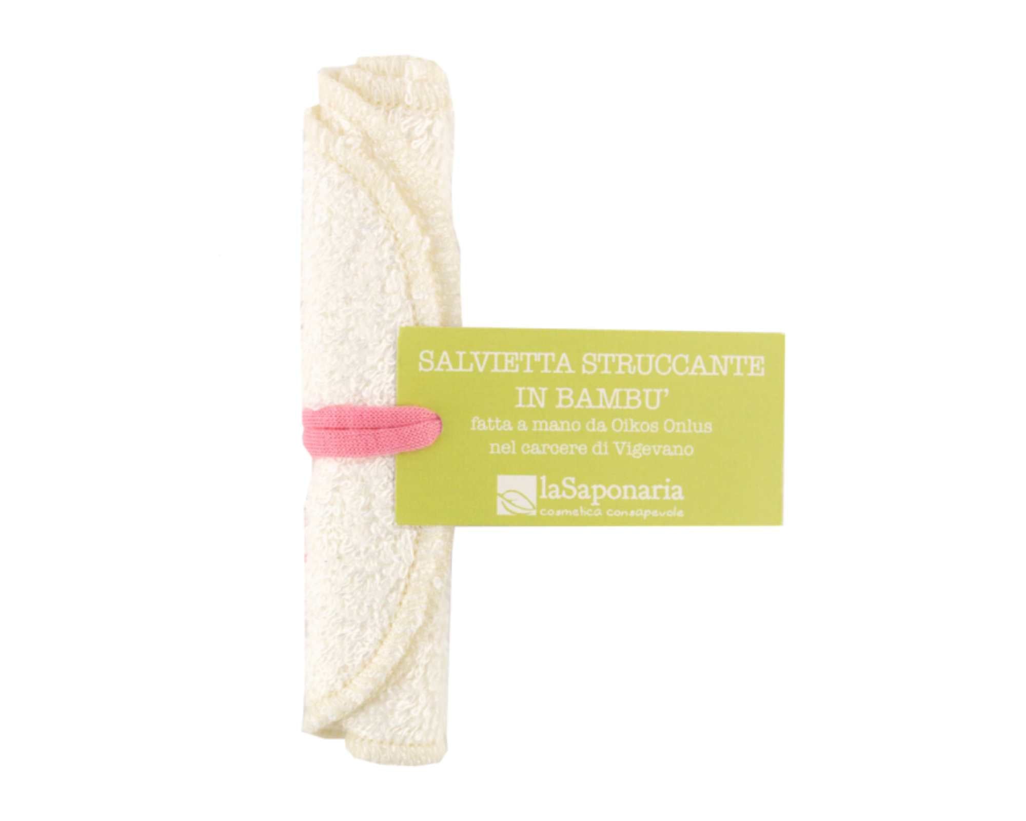 La salvietta struccante in bamboo de La Saponaria rappresenta l’alternativa sostenibile ai dischetti di cotone usa e getta. Si utilizza infatti allo stesso modo, ma dopo l’utilizzo invece di buttarla via basta lavarla e riutilizzarla.