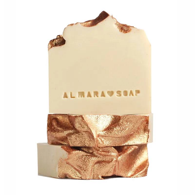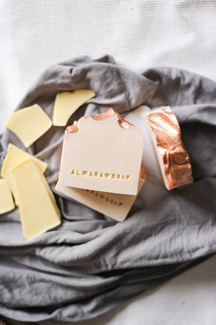 Il design del nostro sapone artigianale è perfetto come la sua fragranza. White Chocolate ha uno scintillante top dorato che sta bene in qualsiasi bagno. Il sapone al cioccolato bianco è anche un dolcissimo regalo per i tuoi cari che ne apprezzeranno il profumo e il design unici.