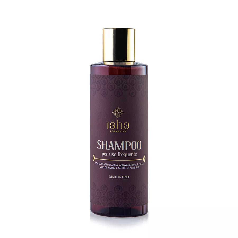 Lo shampoo uso frequente ISHA è formulato con tensioattivi naturali e arricchito di estratti ayurvedici di Amla, Ashwagandha e Tulsi. L’Amla vanta proprietà eccezionali per l’idratazione del capello, l’Ashwaganda, chiamato anche ginseng indiano, stimola il microcircolo per capelli sani e forti. Il Tulsi, chiamato anche basilico santo, unitamente all’idrolato di rosa damascena BIO, sono forti riequilibranti e calmanti contro prurito e rossori. Arricchito con Olio di Ricino, succo di Aloe BIO e saccaridi in grado di preservare l’umidità naturale del capello, i vostri capelli assumeranno un aspetto sano, forte e lucido fin dalle prime applicazioni.
