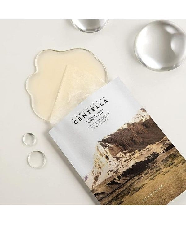 SKIN1004 Madagascar Centella Watergel Sheet Ampoule Mask è una maschera in gel progettata per fornire un’idratazione intensa e lenire la pelle sensibile. Infusa con il 51% di estratto di Centella Asiatica, nota per le sue proprietà calmanti e rigeneranti, aiuta a ridurre rossori e irritazioni.