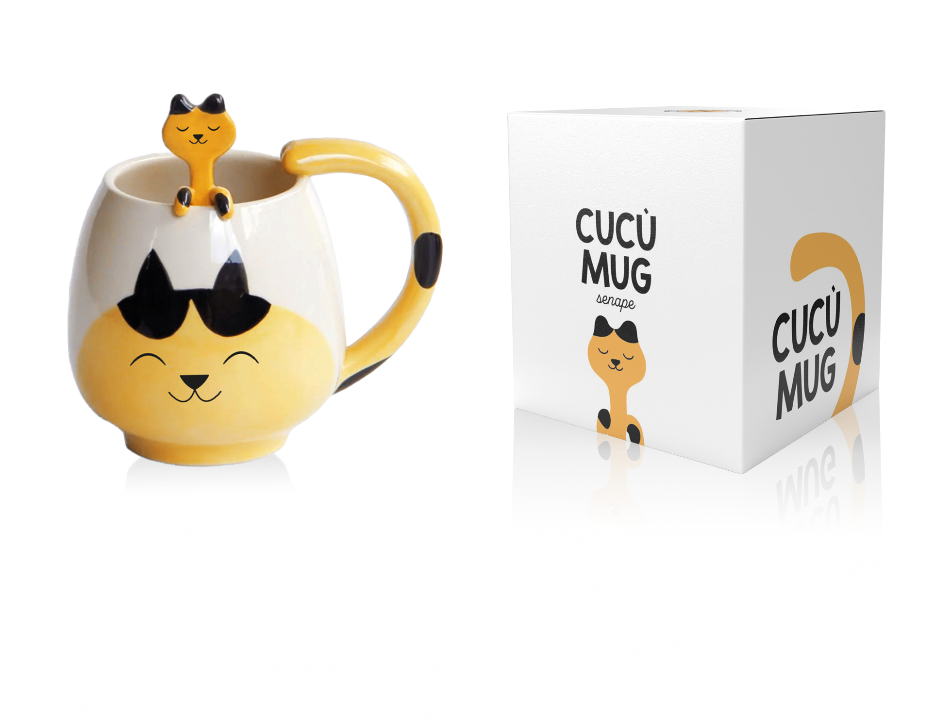 Tazza in Ceramica Cucù Cat Senape con Cucchiaino