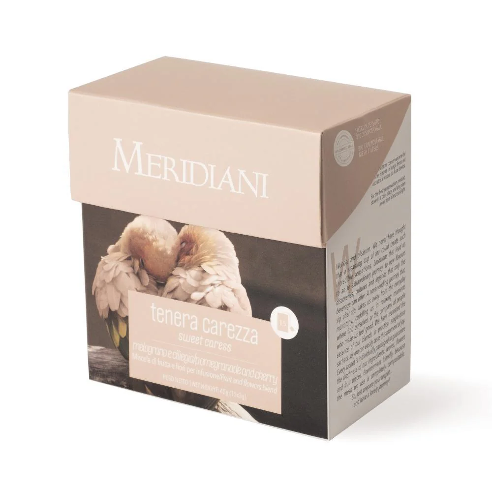 Infuso ciliegia e melograno. Il calore del palmo di una mano che teneramente sfiora una guancia rivive in questa miscela. La morbida dolcezza delle ciliegie rosse più mature si mescola agli straordinari toni fruttati del melograno. Una piacevole inaspettata sorpresa che coccola spirito e gusto.