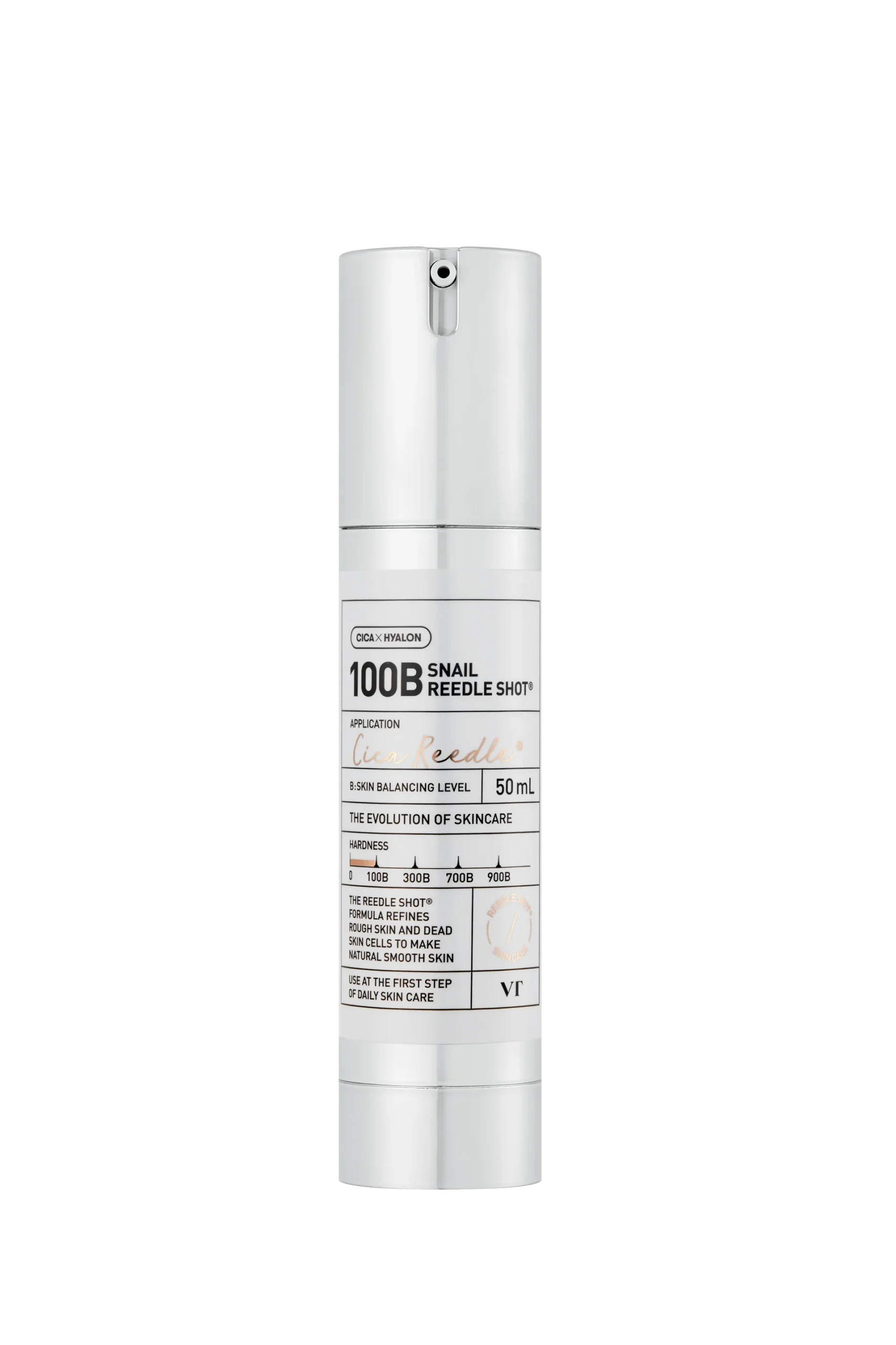Snail Reedle Shot 100B (balancing) di VT Cosmetics è un siero intensivo progettato per trasformare la pelle giorno dopo giorno grazie all’unione della mucina di lumaca e dell’innovativa tecnologia Cica Reedle™, un sistema di micro-strutture naturali che stimola la pelle e favorisce l’assorbimento profondo degli attivi.